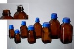 Starkwandige Chemikalienflaschen aus Braunglas.